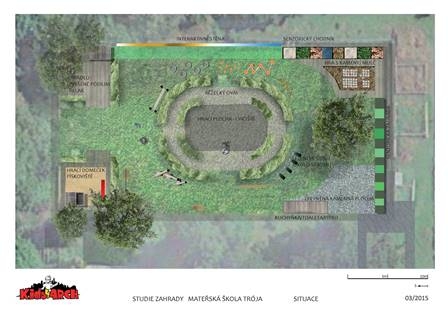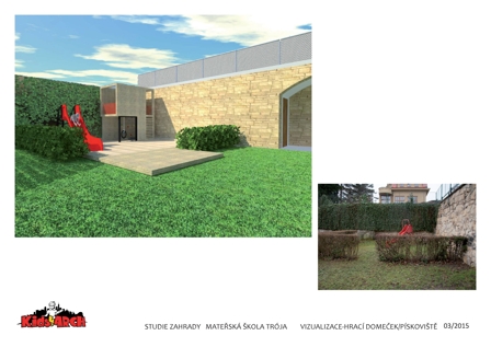 Zadání: proměna starého hřiště v čisté, lehce udržitelné, děti rozvíjejíci, edukativní i sportovně zaměřené, recyklované a ladící s novým veřejným hřištěm v sousedství. Použití jiných prvků než jsou užity v modernizovaném vedlejším hřišti.
